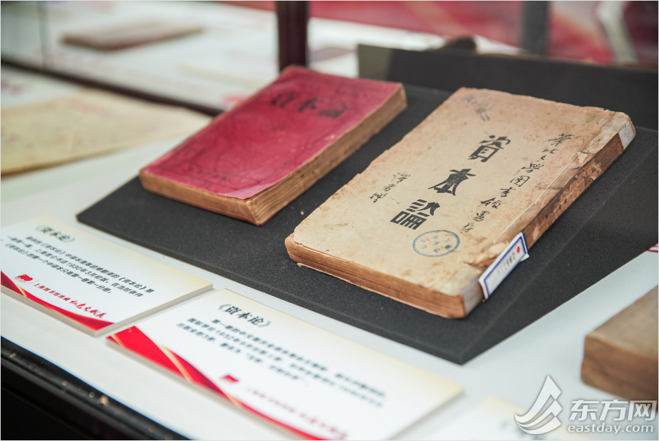上海图书馆馆长陈超在开幕致辞中表示,希望广大读者们能够通过这些馆藏红色文献,管窥先进思想在中国大地传播发扬的过程,也能看到百年来无数中国共产党人为国家富强、人民幸福前赴后继的奋斗历程。图为展出的《资本论》。
