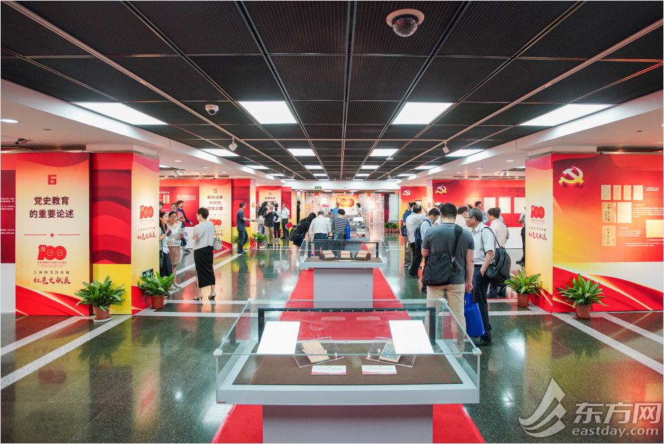 据悉,本次展览在上海图书馆第一展厅从6月24日展出至7月7日。展出期间,上海图书馆的各主要新媒体将持续推出围绕上图珍藏红色文献的展品介绍与展览导读。图为展览现场。