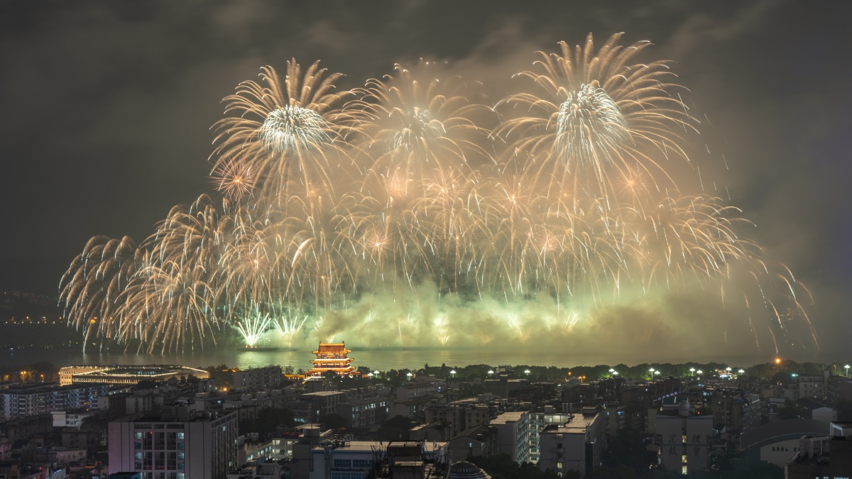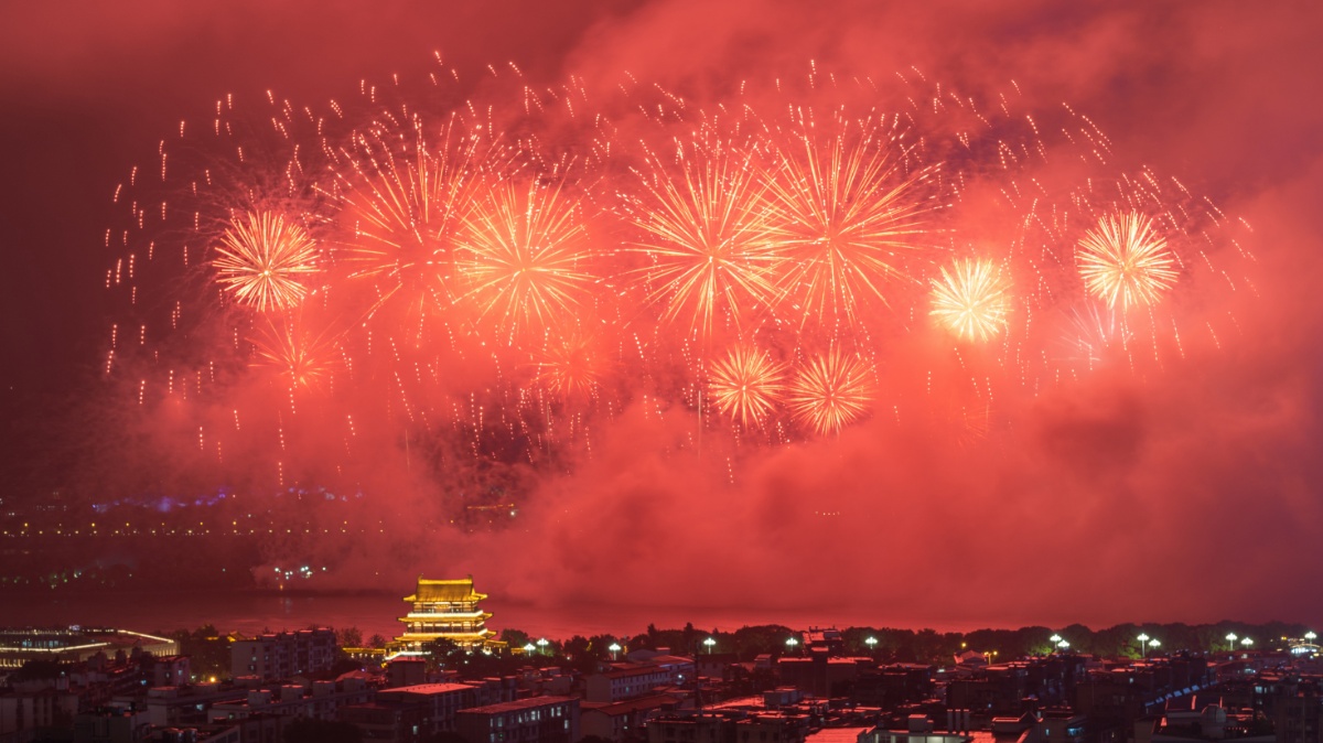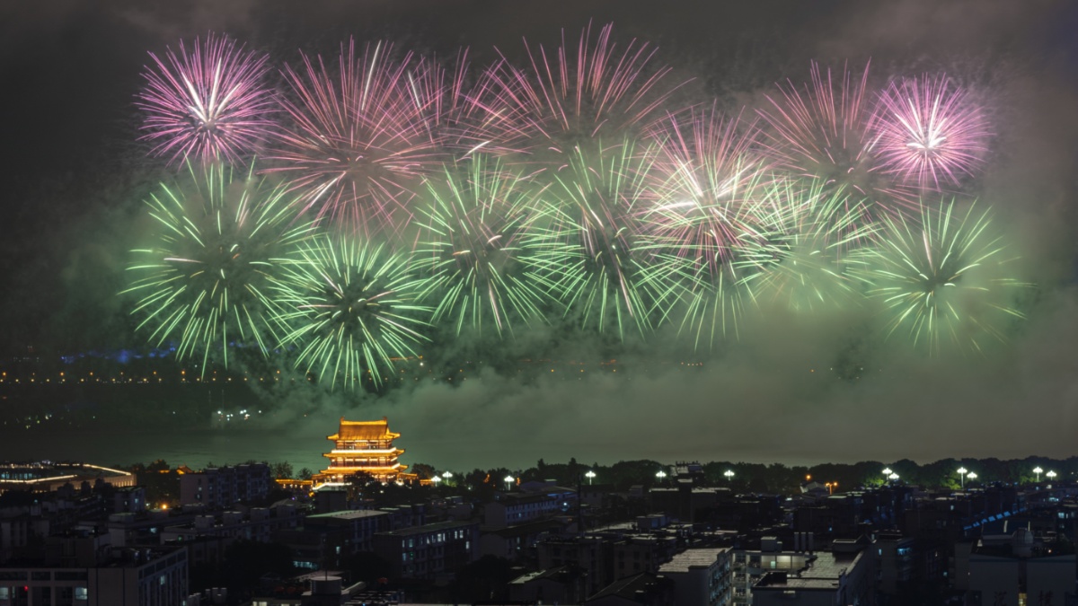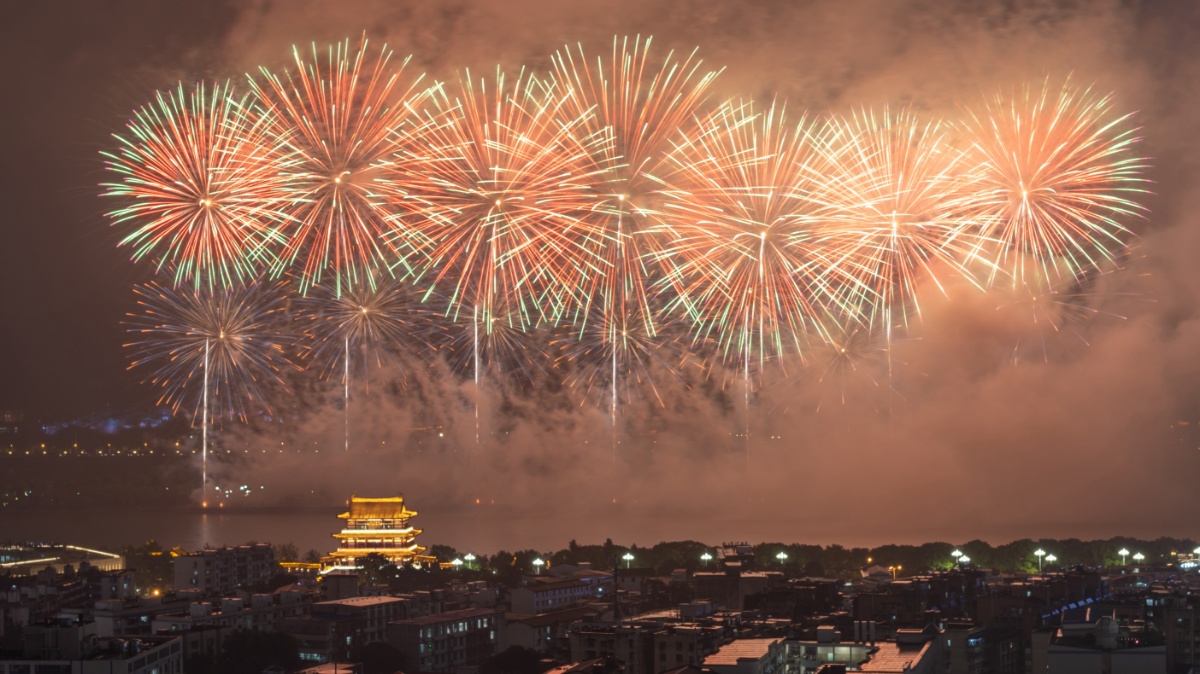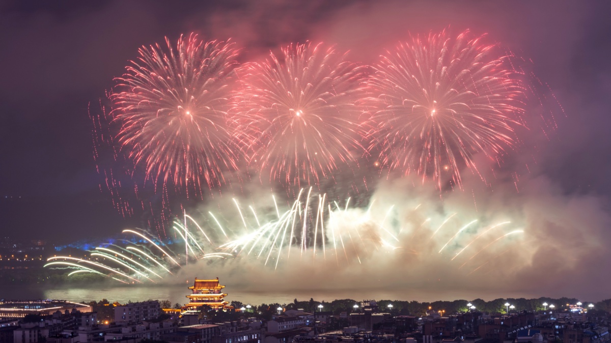 湖南长沙橘子洲焰火庆祝中国共产党成立100周年