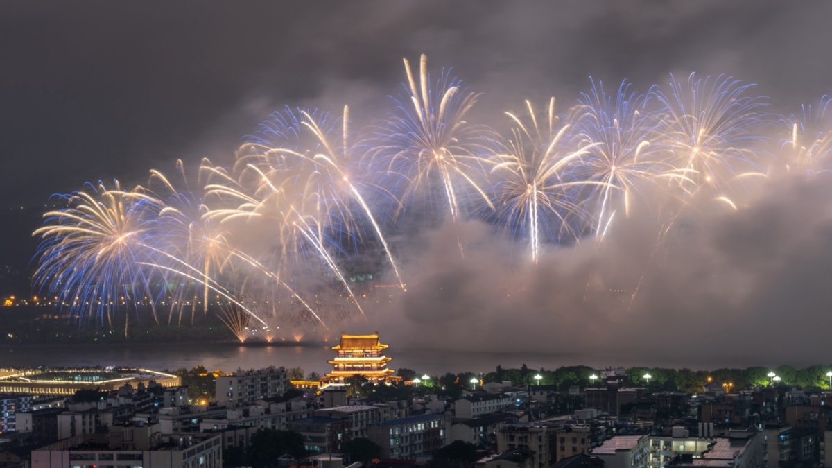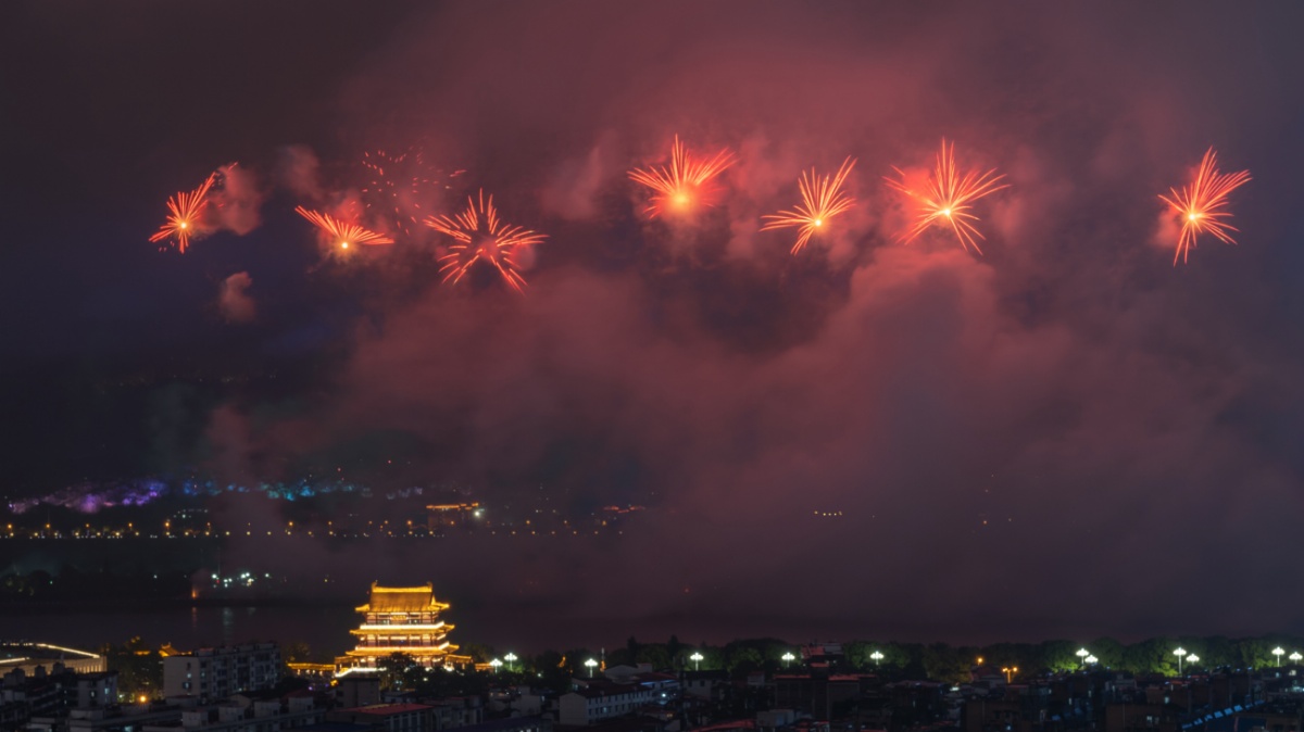 2021年6月30日晚上,湖南长沙,“党的盛典 人民的节日”——湖南长沙庆祝中国共产党成立100周年大型音乐焰火晚会,在橘洲焰火广场盛大开幕。星城长沙,用一场“火树银花不夜天”的焰火盛宴,和“一江两岸”灯光秀,深情表达对党的无限热爱和美好祝福。