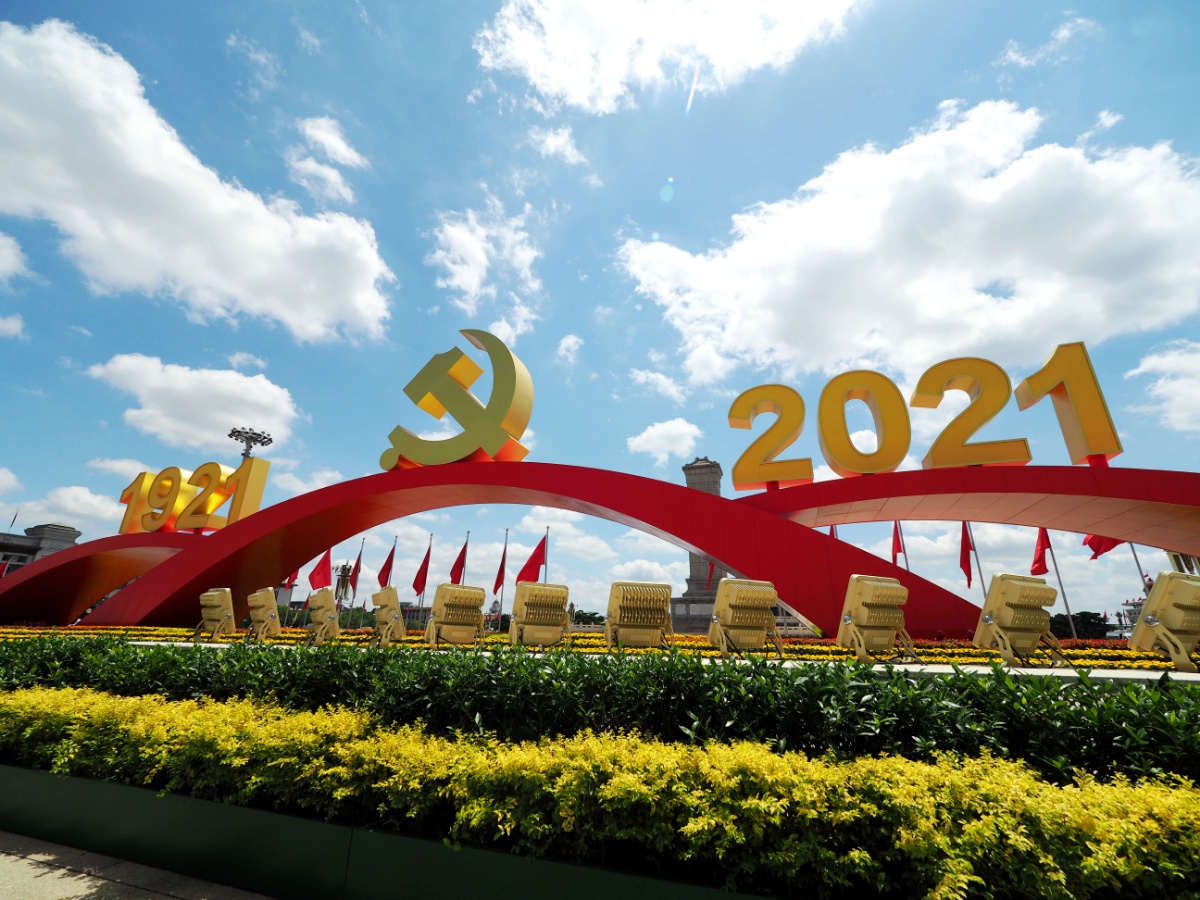 2021年7月3日,天安门广场庆祝建党百年景观壮丽威严。