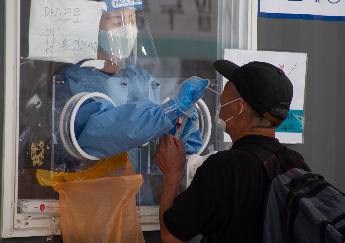 当地时间2021年7月2日,韩国首尔,民众进行新冠病毒检测。