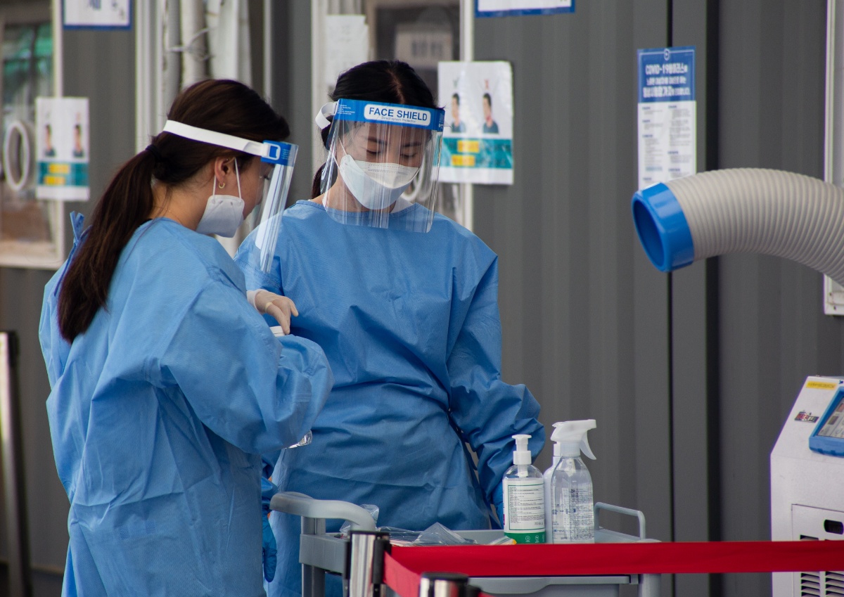 当地时间2021年7月2日,韩国首尔,医护人员准备进行新冠病毒检测。