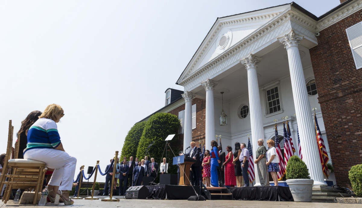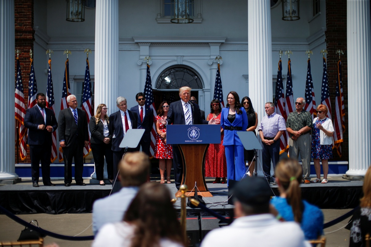当地时间2021年7月7日,美国新泽西州,美国前总统特朗普宣布,他已对脸书、推特和谷歌母公司字母表三家公司及其CEO发起集体诉讼,要求恢复他在相应网络社交平台的账号使用权限。