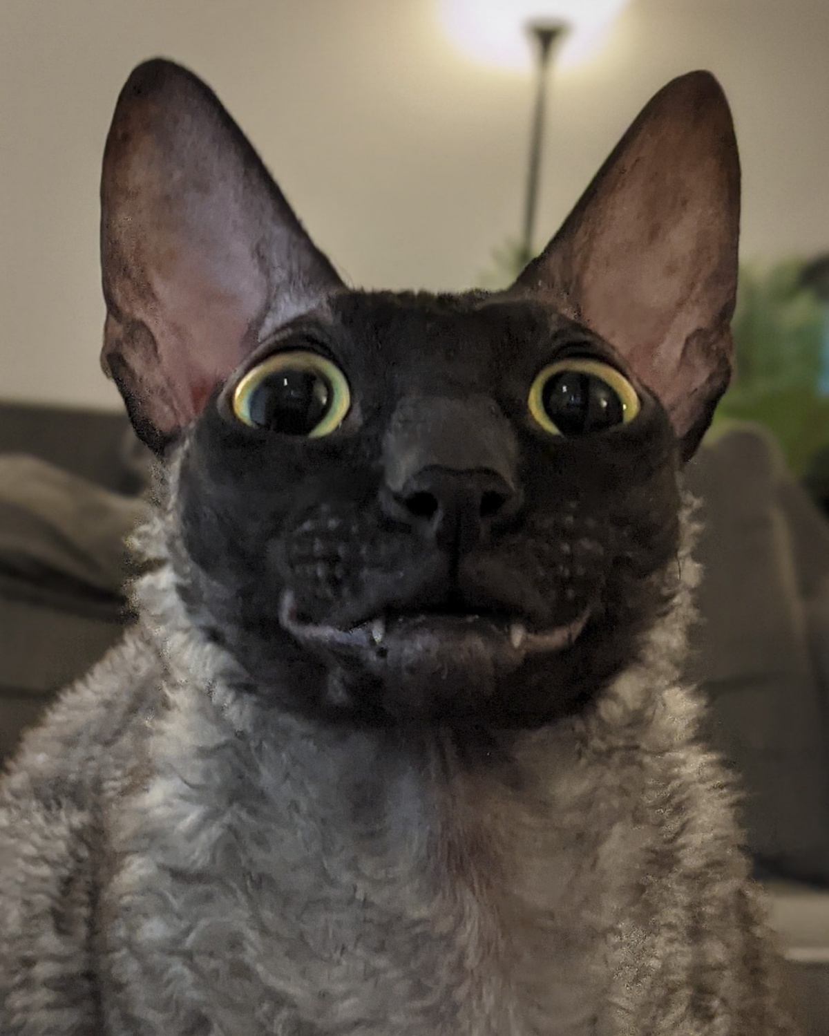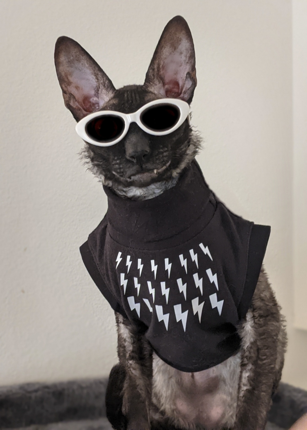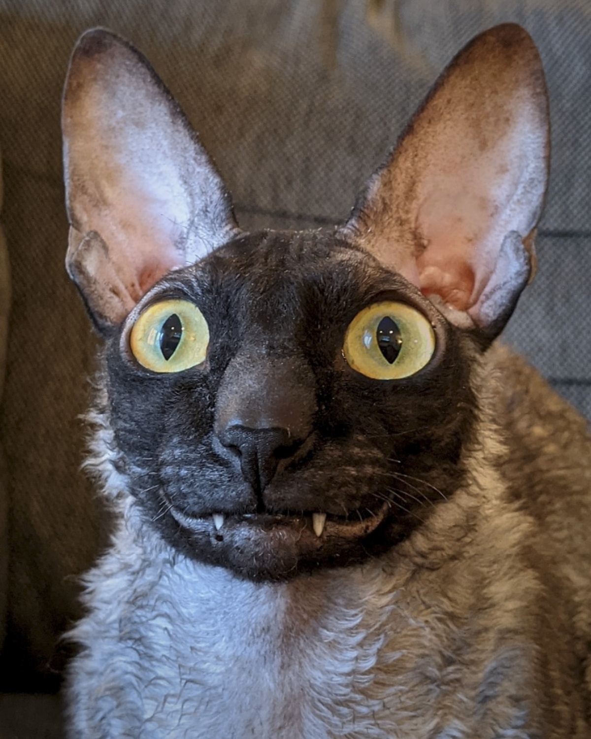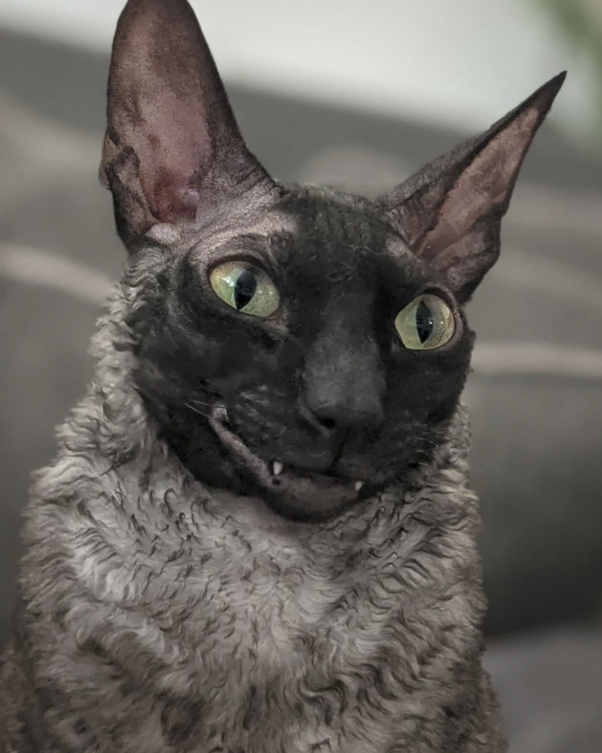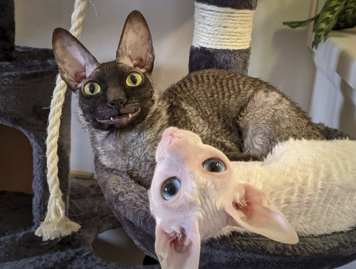 2021年7月9日报道(具体拍摄时间不详),这只名为Pixel的柯尼斯卷毛猫今年2岁,来自美国威斯康星州格林贝。它有着大大的眼睛,因为奇特的长相和小丑一般的笑容在网络上走红,有数千名粉丝。铲屎官Alyson Kalhagen一直在拍摄Pixel的有趣照片,并在社交网络上分享。