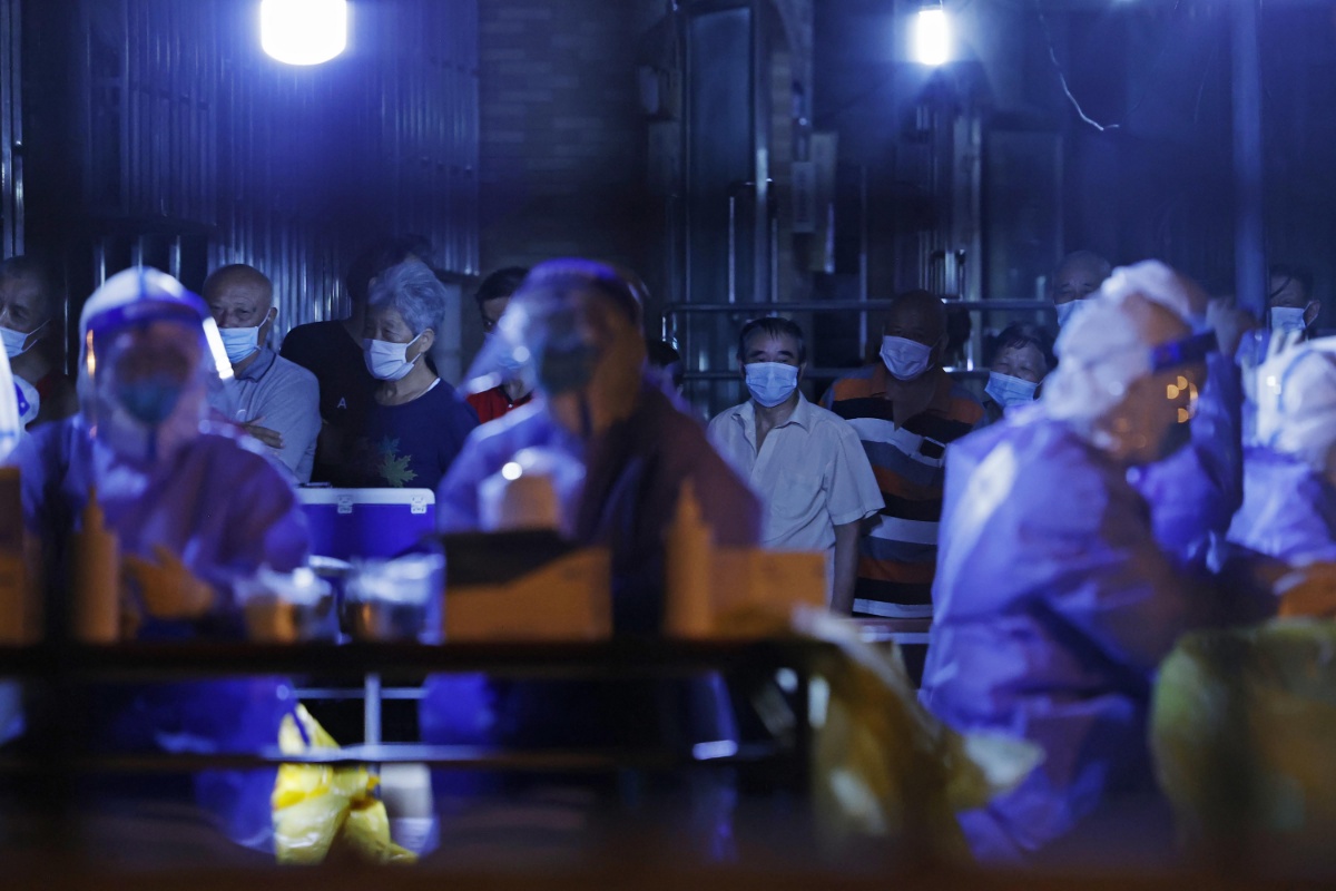 2021年8月2日,上海,位于上海市浦东新区华夏二路1500弄心圆西苑小区内,市民正在进行核酸采样。据上海发布消息,8月2日,上海市浦东一医疗机构报告,发现浦东机场货运区一名外航货机服务人员新冠病毒核酸检测阳性。接报后,疾控机构立即对相关人员及场所开展排查处置、流调采样,并进行实验室检测复核。后续情况将及时向社会公布。