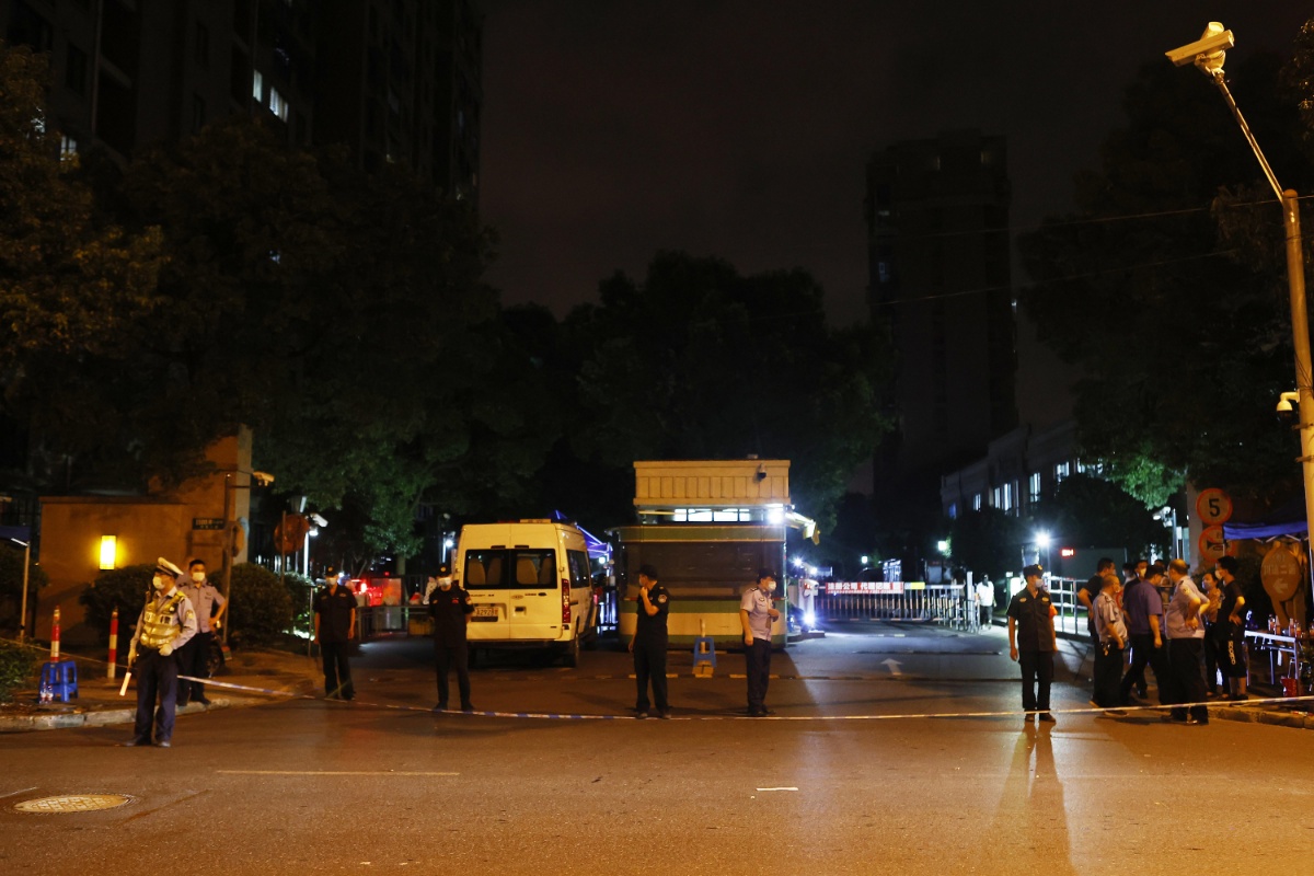 2021年8月2日,上海,位于上海市浦东新区华夏二路1500弄心圆西苑小区门口,保安人员值守着。据上海发布消息,8月2日,上海市浦东一医疗机构报告,发现浦东机场货运区一名外航货机服务人员新冠病毒核酸检测阳性。接报后,疾控机构立即对相关人员及场所开展排查处置、流调采样,并进行实验室检测复核。后续情况将及时向社会公布。
