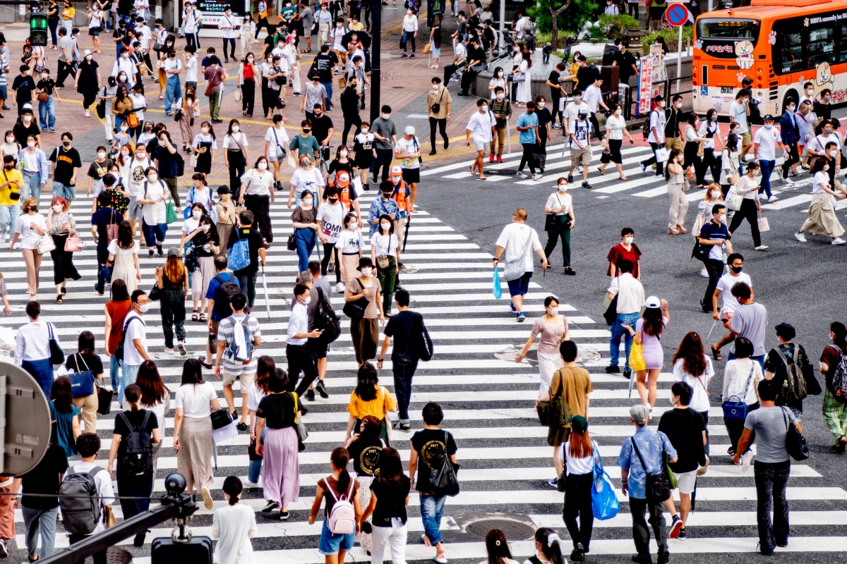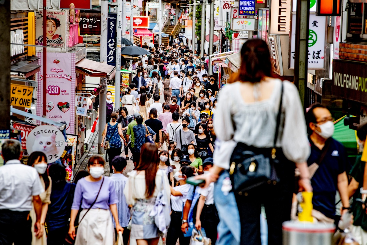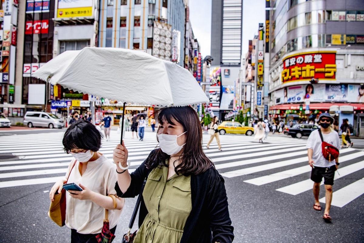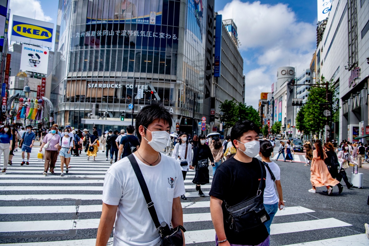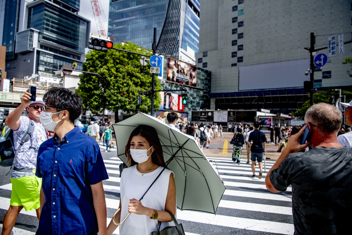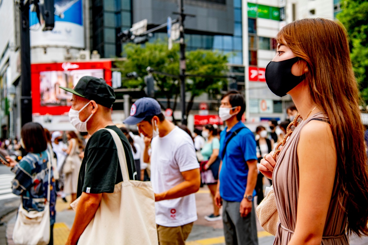 当地时间2021年8月9日,日本东京,当地新冠疫情严峻,民众在街头行走。