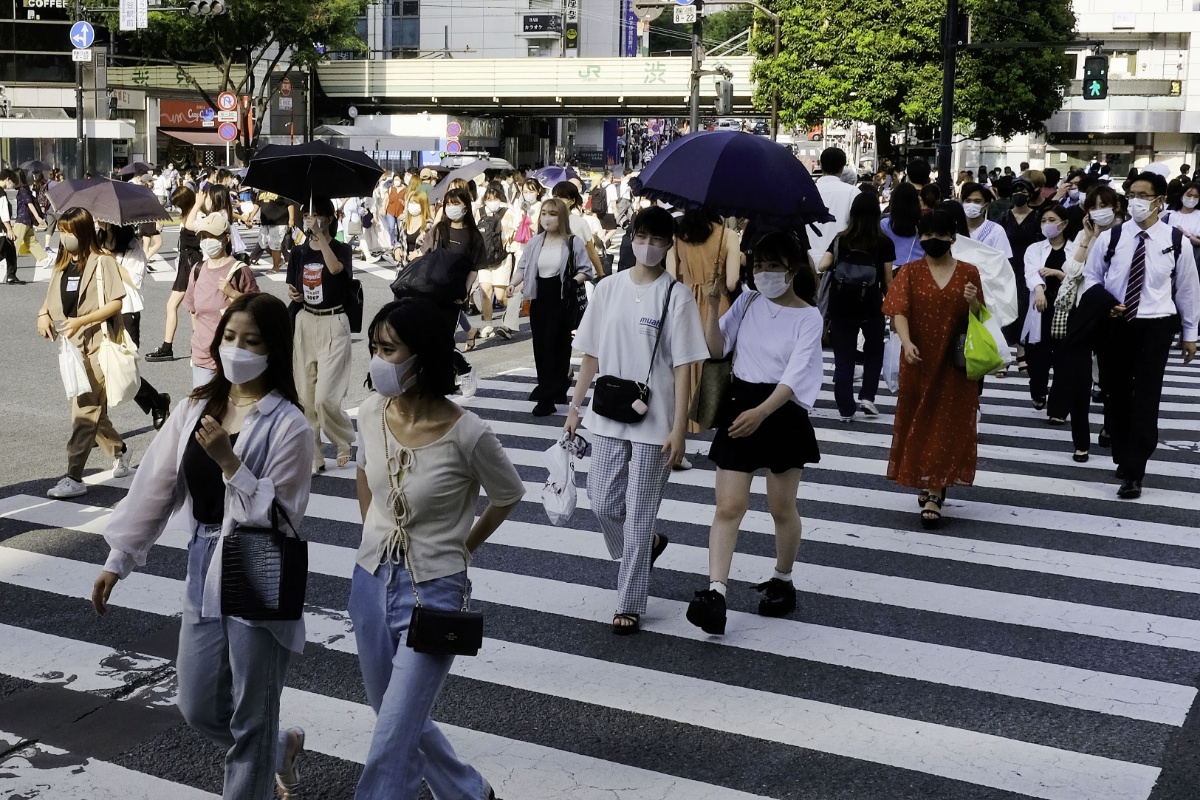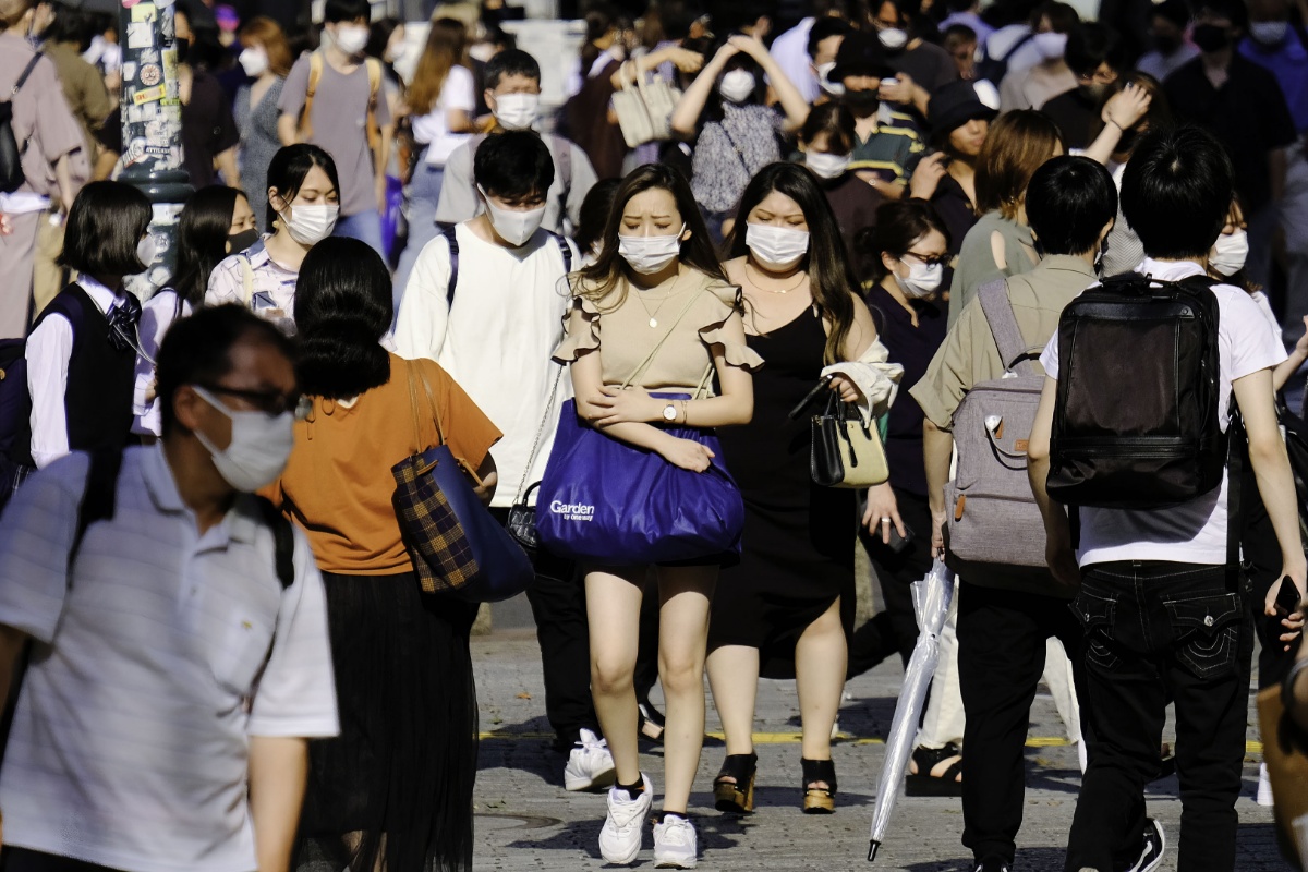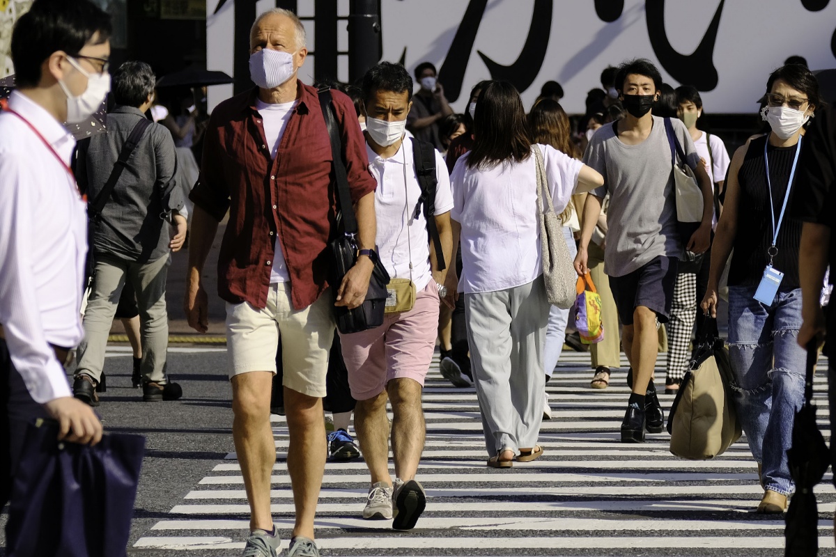 当地时间2021年8月10日报道,日本东京,新冠疫情严峻,民众戴着口罩在街头行走。