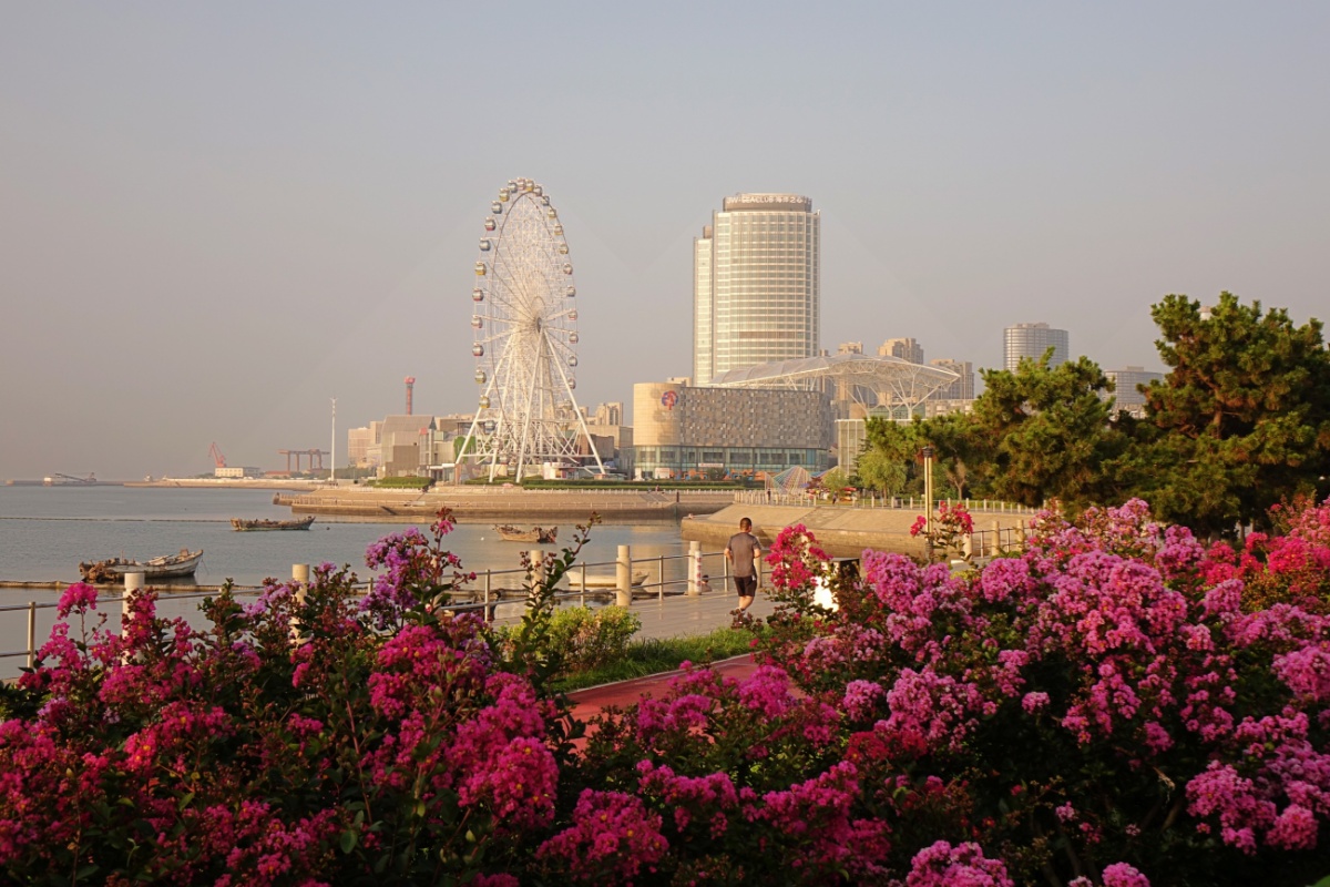山东青岛紫薇进入盛放期 海景相衬美不胜收