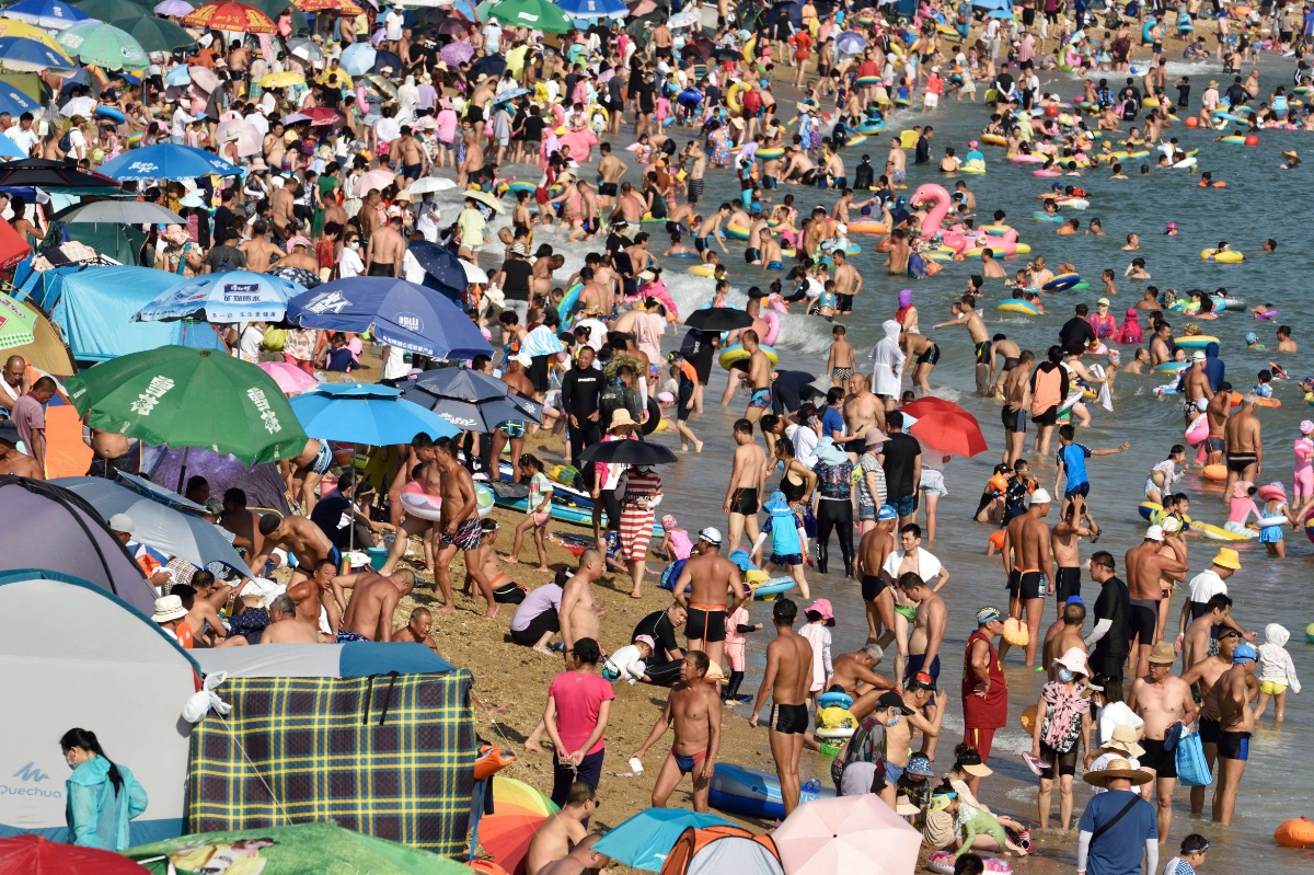 2021年8月16日,广东深圳,南海伏季休渔期正式结束。当日中午,位于广东省深圳市大鹏南澳海域的渔船纷纷起航出海。(无人机照片)