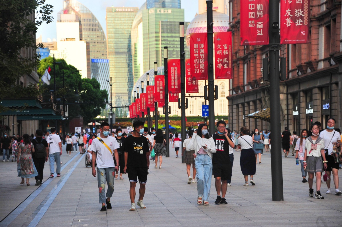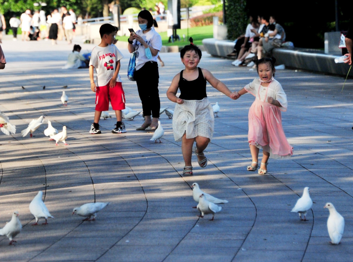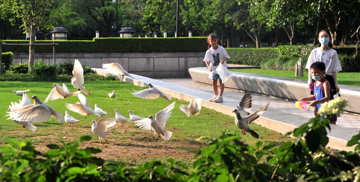 人民广场绿地里,停飞了好多天的广场鸽在阳光下翩翩起舞,也让游客们尽享一份晴好天气的惬意;南京路·步行街上的游客也多了起来,购物逛街的市民络绎不绝。