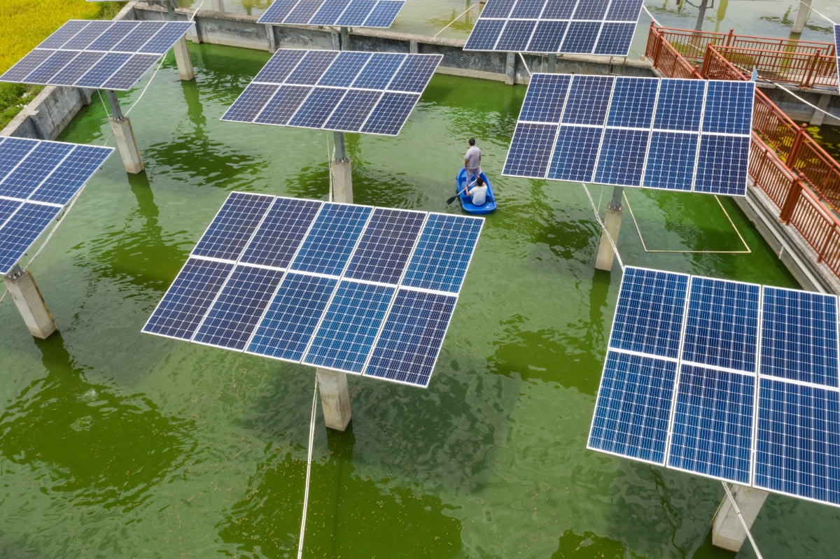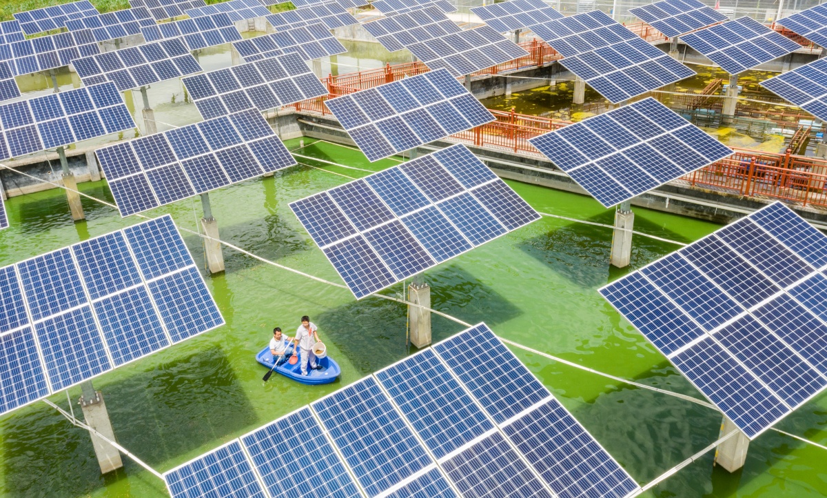 近年来,蒙山县因地制宜开展“光伏+渔业”的光伏发电项目,将原先一些洼涝地、荒地打造为“渔光互补”光伏电站,改变传统的渔业养殖生产方式,实施农光互补,既符合国家清洁低碳能源发展战略,又为该县乡村振兴增添新力量。