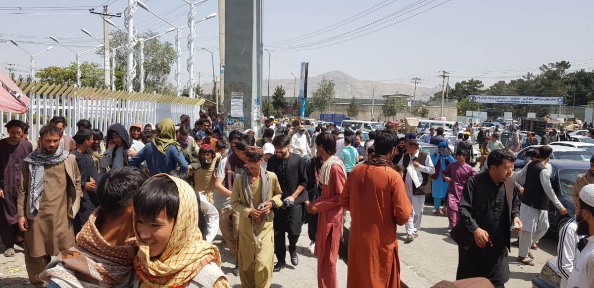 当地时间2021年8月17日,阿富汗喀布尔,阿富汗民众涌向喀布尔国际机场。