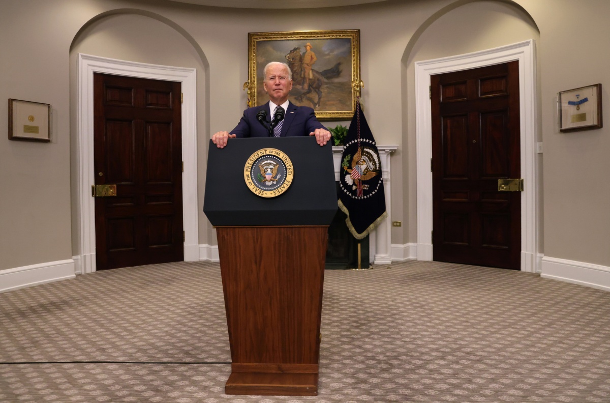 当地时间2021年8月24日,美国华盛顿,美国总统拜登发表讲话,表示美国的目标是在8月31日前完成从阿富汗撤离的行动。
