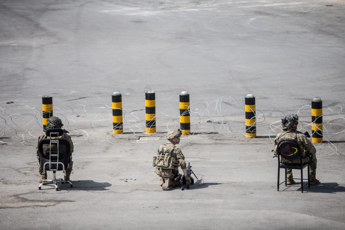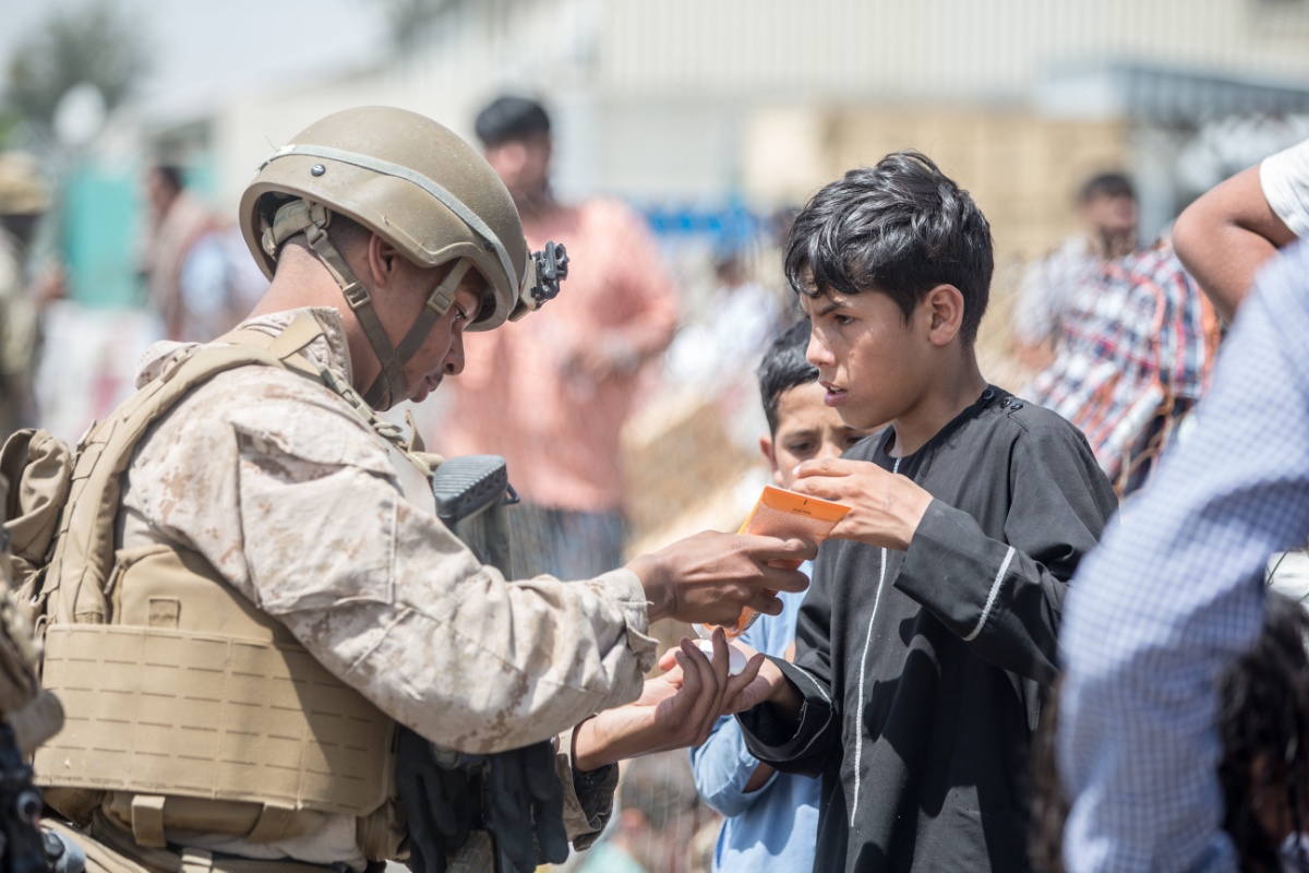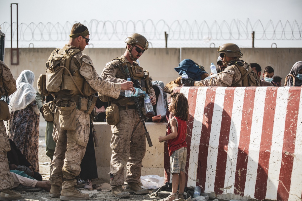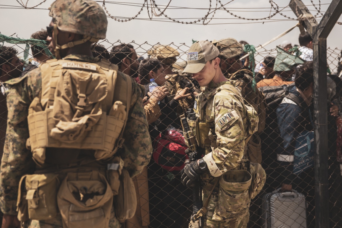 当地时间2021年8月23日,阿富汗喀布尔,美军在机场协助人员撤离阿富汗。