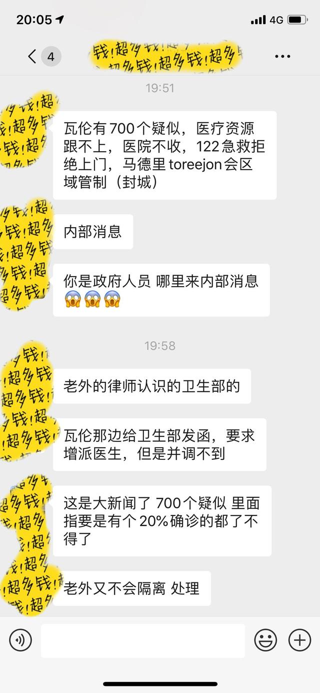 多个在西班牙的留学生告诉记者,学校官网上"安安静静"的没有任何应对疫情的通知,自己的西班牙同学更是不把这个病放在心上。他们大多数人的态度都是"只有老年人才会得这个病,你年轻,没事的";要么就是"你是病毒,离我远点",对佩戴口罩的他们恶语相向。