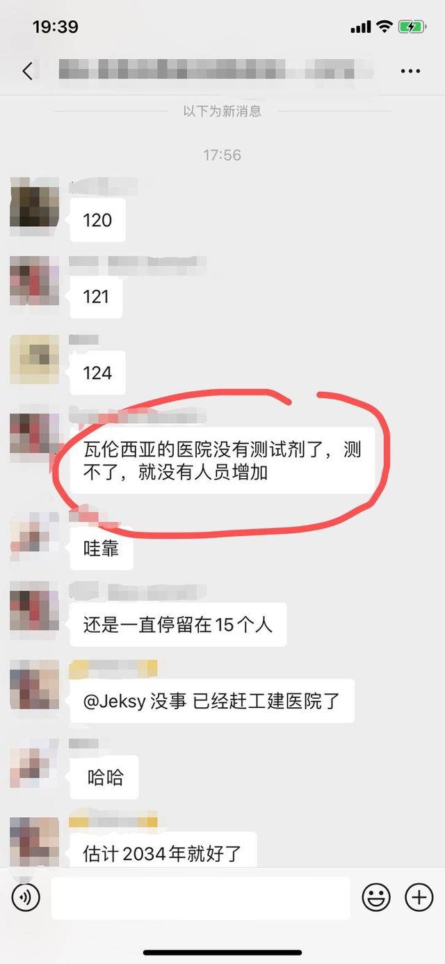 于是网上出现了各种声音,当地华人也流传着一份还有待考证的信息:数据不变,是因为检测试剂不够了。