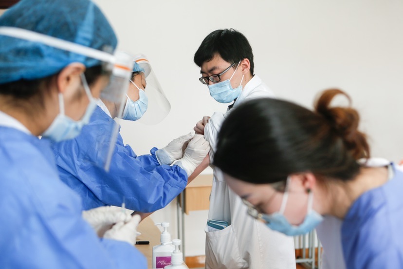 成元海是仁济医院东院的一名进修医生,今天他完成了新冠疫苗第二针的注射。东方网记者采访了解到,除了医院职工,在仁济医院实习的医学生、进修医生、第三方工作人员等,如在4月底前未结束院内工作,都将接受新冠疫苗的接种。