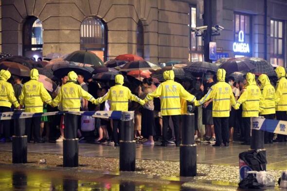 不仅在外滩,从河南中路出发沿南京东路向东前行,一路上都有公安民警和武警战士列队维持秩序。