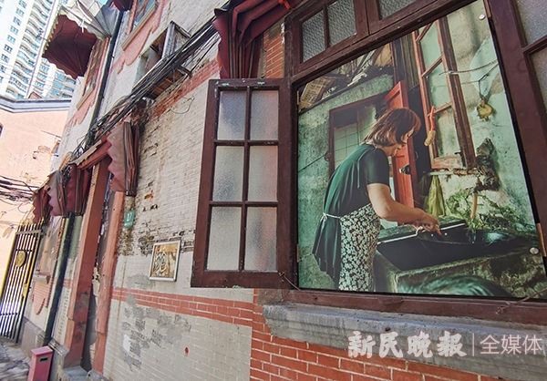 比如,早期张园最高建筑“安恺第”,早已不复存在,静安置业集团通过收集到的老照片,还原制作了同比例缩小的精美模型,让“历史重现”。电影《我和我的祖国》中,“夺冠”篇章曾在张园取景,展览也复原了居民在弄堂里看女排比赛的布景。一条窄弄内,门窗中嵌入LED屏,通过多媒体技术再现张园内充满烟火气的市井生活。